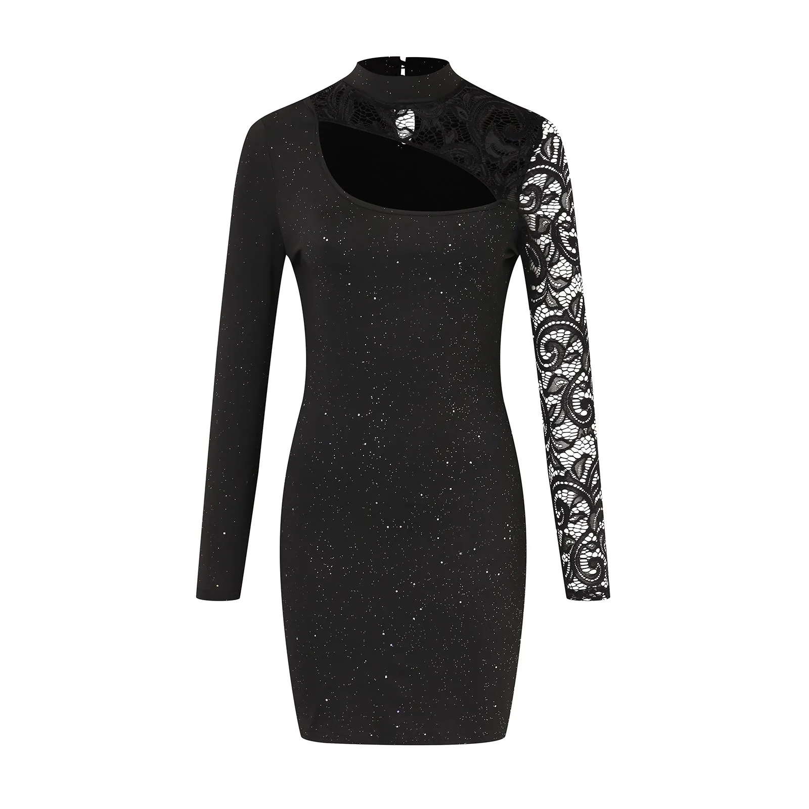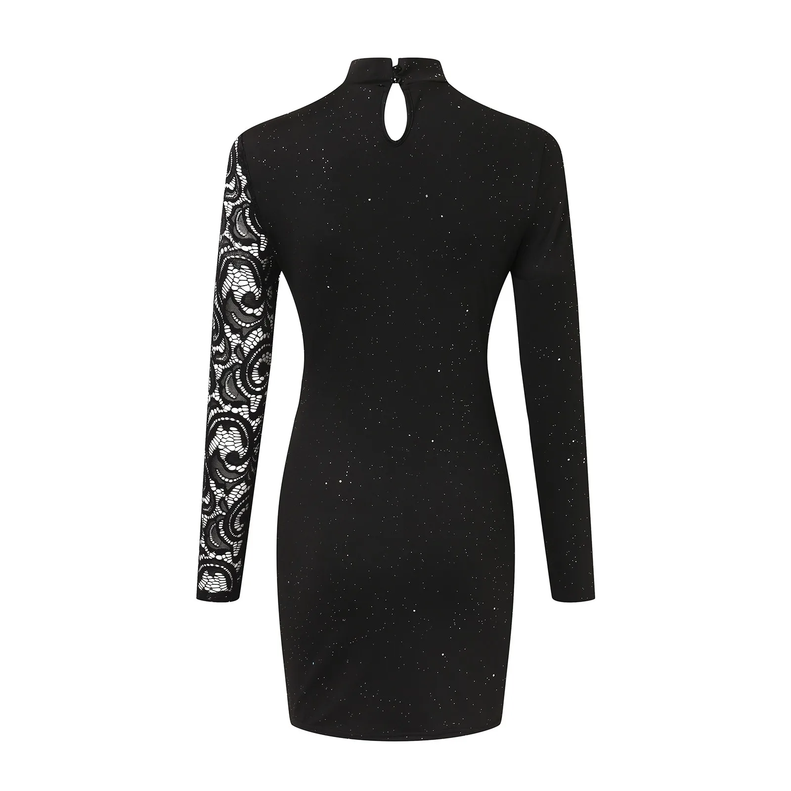 76 reviews for 2024 Women’s Elegant Wrap Hip Dress Fashion Glitter High Neck Sexy Lace Hollow Knit Fabric Long Sleeve Mini Party Dress Female Saim Tex